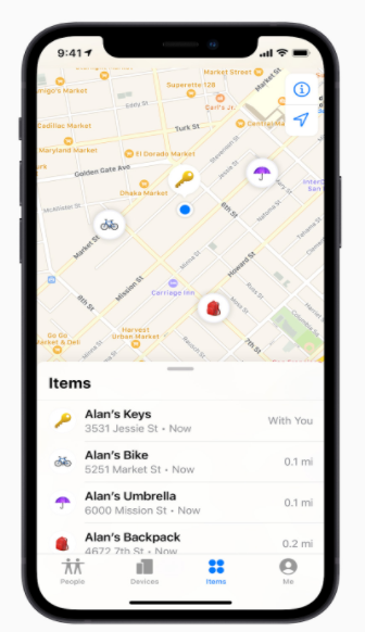 Your Waretag sends out a secure Bluetooth signal that can be detected by nearby devices in the Find My network. These devices send the location of your Waretag to iCloud — then you can go to the Find My app and see it on a map. The whole process is anonymous and encrypted to protect your privacy. And itʼs efficient, so thereʼs no need to worry about battery life or data usage.